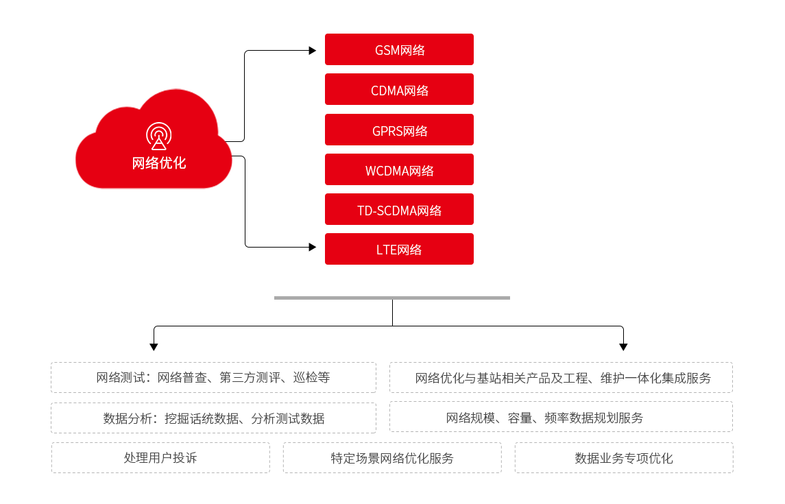 公司具有專業(yè)的網(wǎng)絡(luò)優(yōu)化分析團(tuán)隊(duì),具備多廠家、多運(yùn)營商的綜合性網(wǎng)絡(luò)優(yōu)化能力,針對(duì)GSM、CDMA、TD-SCOMA、WCDMA、LTE等多種制式的無線網(wǎng)絡(luò),提供整體的優(yōu)化解決方案,包括建網(wǎng)初期相后期擴(kuò)容工程的工程網(wǎng)絡(luò)優(yōu)化服務(wù)、運(yùn)維期間的日常網(wǎng)絡(luò)優(yōu)化服務(wù)、階段性分析解決網(wǎng)絡(luò)瓶頸的專項(xiàng)網(wǎng)絡(luò)優(yōu)化服務(wù),通過測(cè)試數(shù)據(jù)分析、話統(tǒng)數(shù)據(jù)分析,結(jié)合天饋線系統(tǒng)優(yōu)化、無線參數(shù)優(yōu)化話務(wù)均衡等方式,對(duì)網(wǎng)絡(luò)性能指標(biāo)進(jìn)行優(yōu)化提升,最終達(dá)到提高網(wǎng)絡(luò)質(zhì)量以滿足終端用戶需求及提升網(wǎng)絡(luò)設(shè)備利用率的效果。