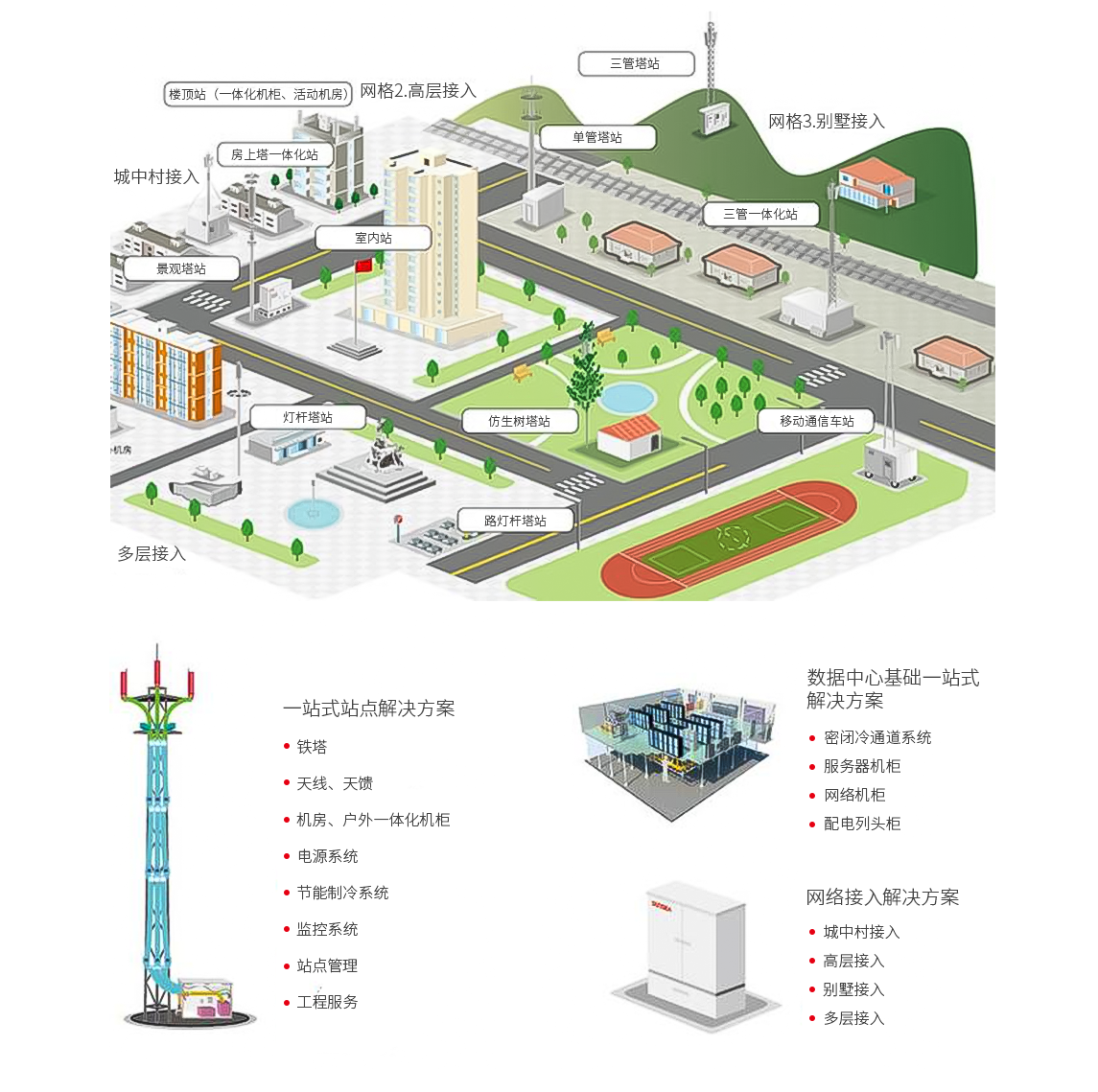 借助日海智能的產(chǎn)品優(yōu)勢(shì),提供產(chǎn)品和工程相集合的集成服務(wù),為客戶(hù)提供整體解決方案。日海智能自主研發(fā)在工程中廣泛應(yīng)用的產(chǎn)品有:小基站、高低壓配電柜(箱)、銅纜產(chǎn)品(寬帶音頻總配線(xiàn)架MDF+數(shù)字配線(xiàn)架DDF+綜合布線(xiàn)系統(tǒng))、光纖光纜管理系統(tǒng)(ODF+光無(wú)源器件+FTTX)、戶(hù)外通信機(jī)房、戶(hù)外一體化通信機(jī)房、網(wǎng)絡(luò)柜、電源分配系統(tǒng)、槽道管理系統(tǒng)、移動(dòng)通信天饋系統(tǒng)(包括各種美化天線(xiàn))、美化桿塔、機(jī)房防雷配電產(chǎn)品、數(shù)據(jù)中心基礎(chǔ)設(shè)施產(chǎn)品、樓宇智能化系統(tǒng)等。